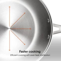 The Stahl Artisan stainless steel Frypan, is a product that has set a benchmark in utility, quality and efficiency. This is a frypan that is a must have in the kitchen because of it’s ease of handling, elevated cooking experience and versatility. Make your favorite patties, stir fries, eggs etc. on this stainless steel frypan. The Artisan Frypan is manufactured with utmost care and precision, ensuring an impeccable feel and finish.